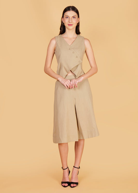 Beige Cotton Front Overlap Waist Coat & Skirt Coord Set