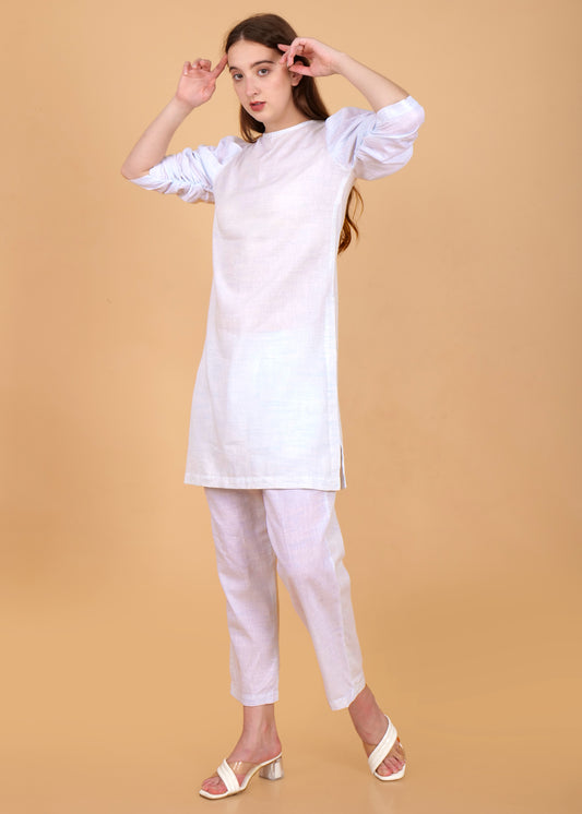 Khadi Cotton Light Blue Kurta Coord Set
