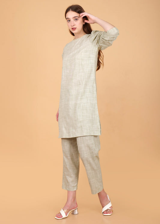 Khadi Cotton Light Green Kurta Coord Set