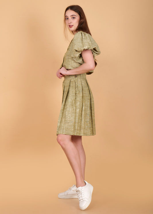Khadi Cotton Light Green Skirt & Top Coord Set