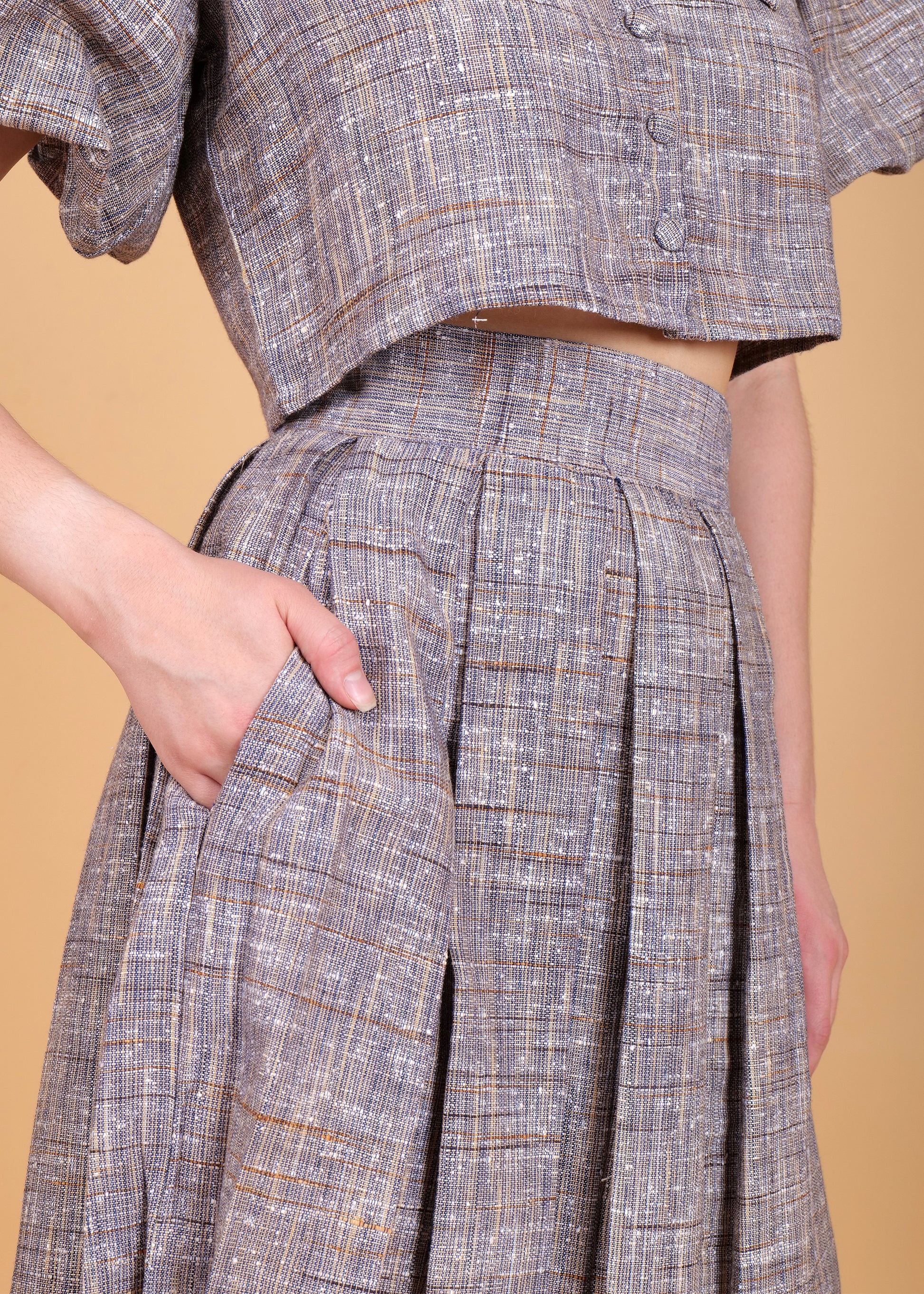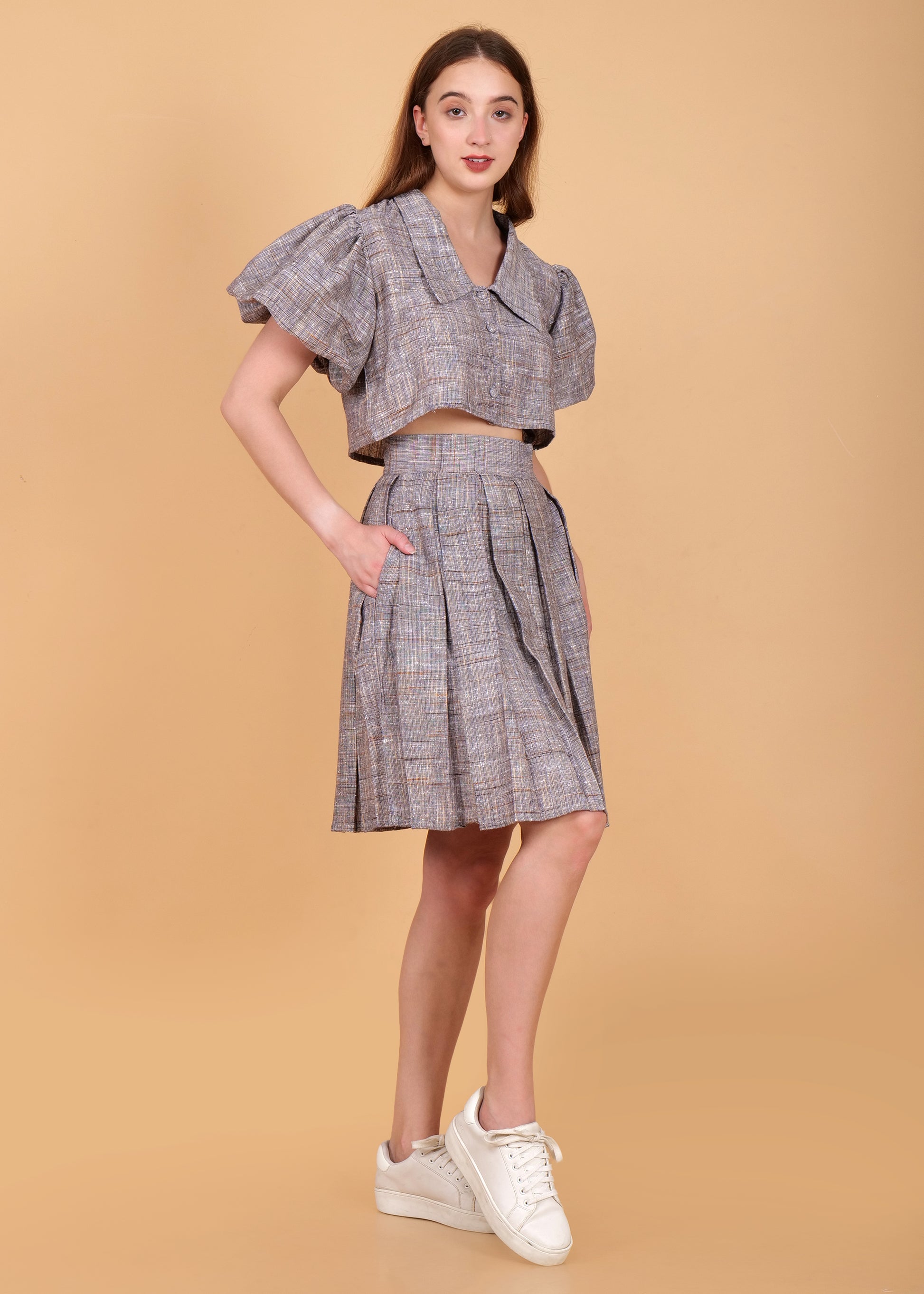Purple Cotton Double Breasted Notched Lapel Crop Top Coord Set