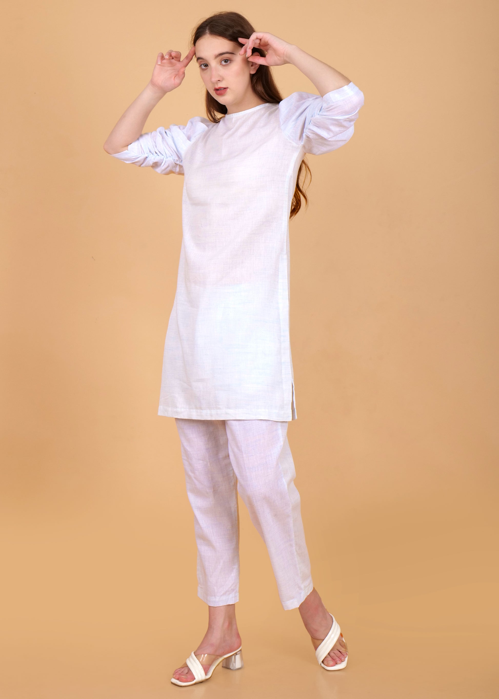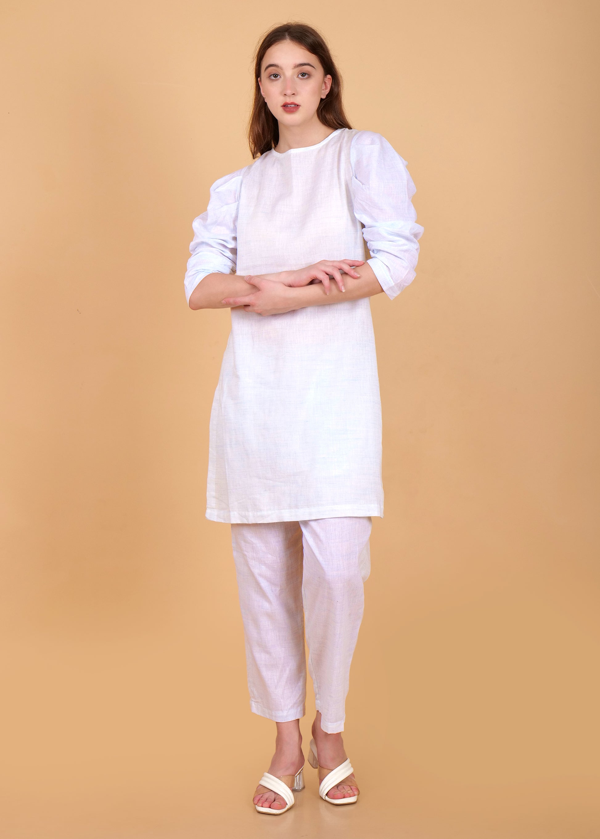 Off White Cotton Double Breasted Notched Lapel Crop Top Coord Set