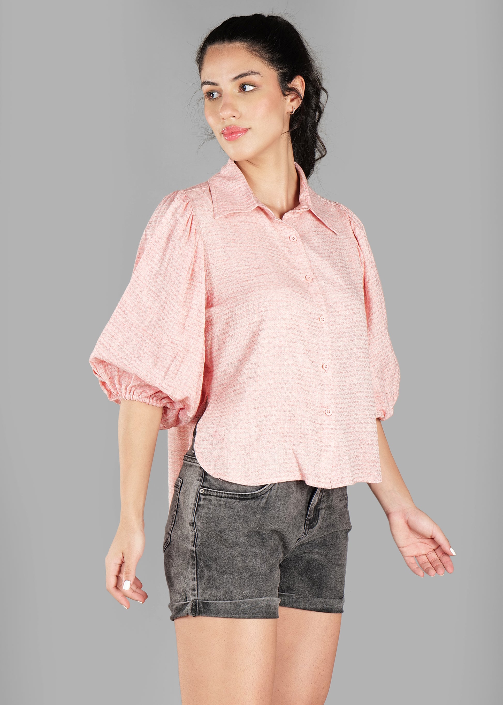 Light Orange Cotton Dobby Print Soft Curve Shirt