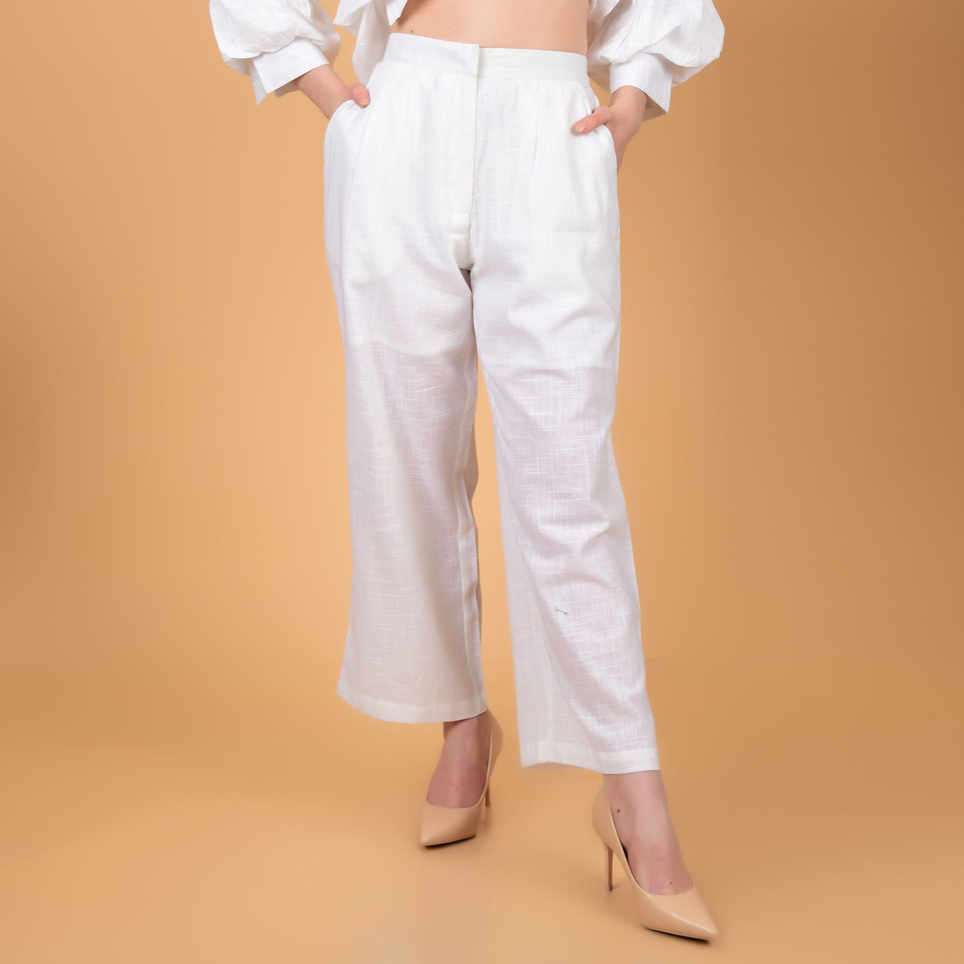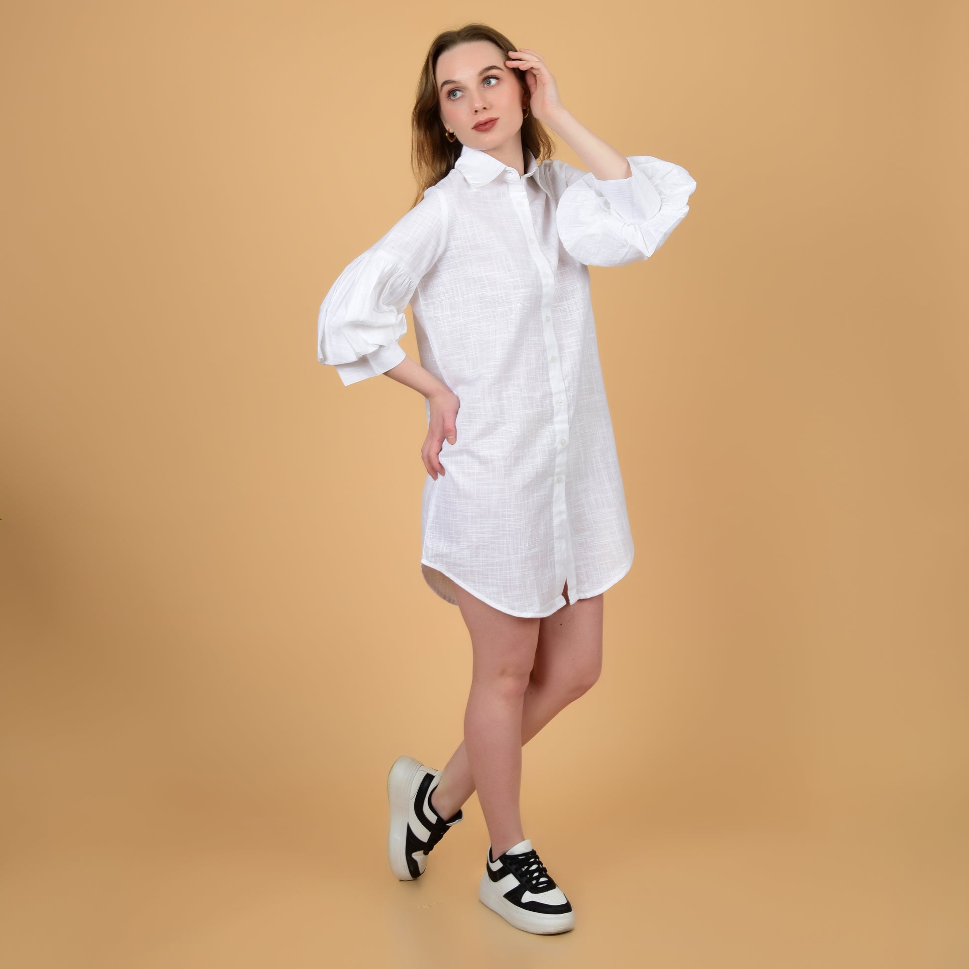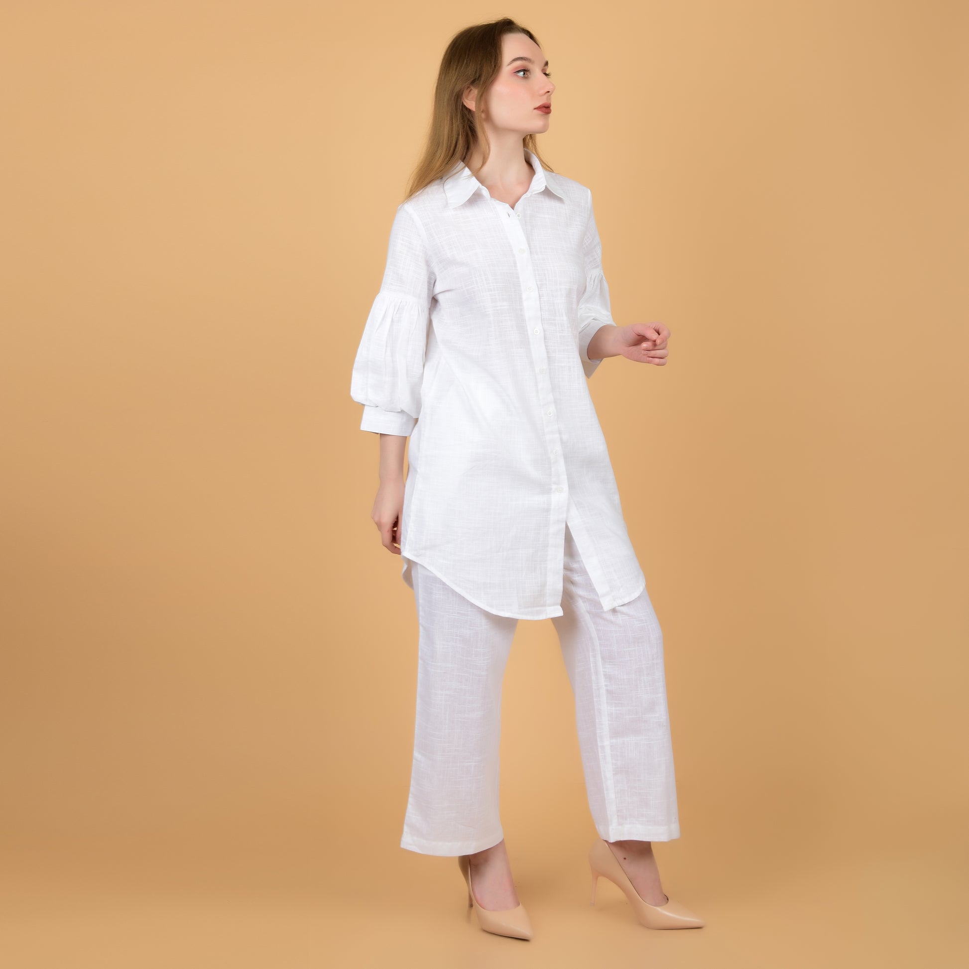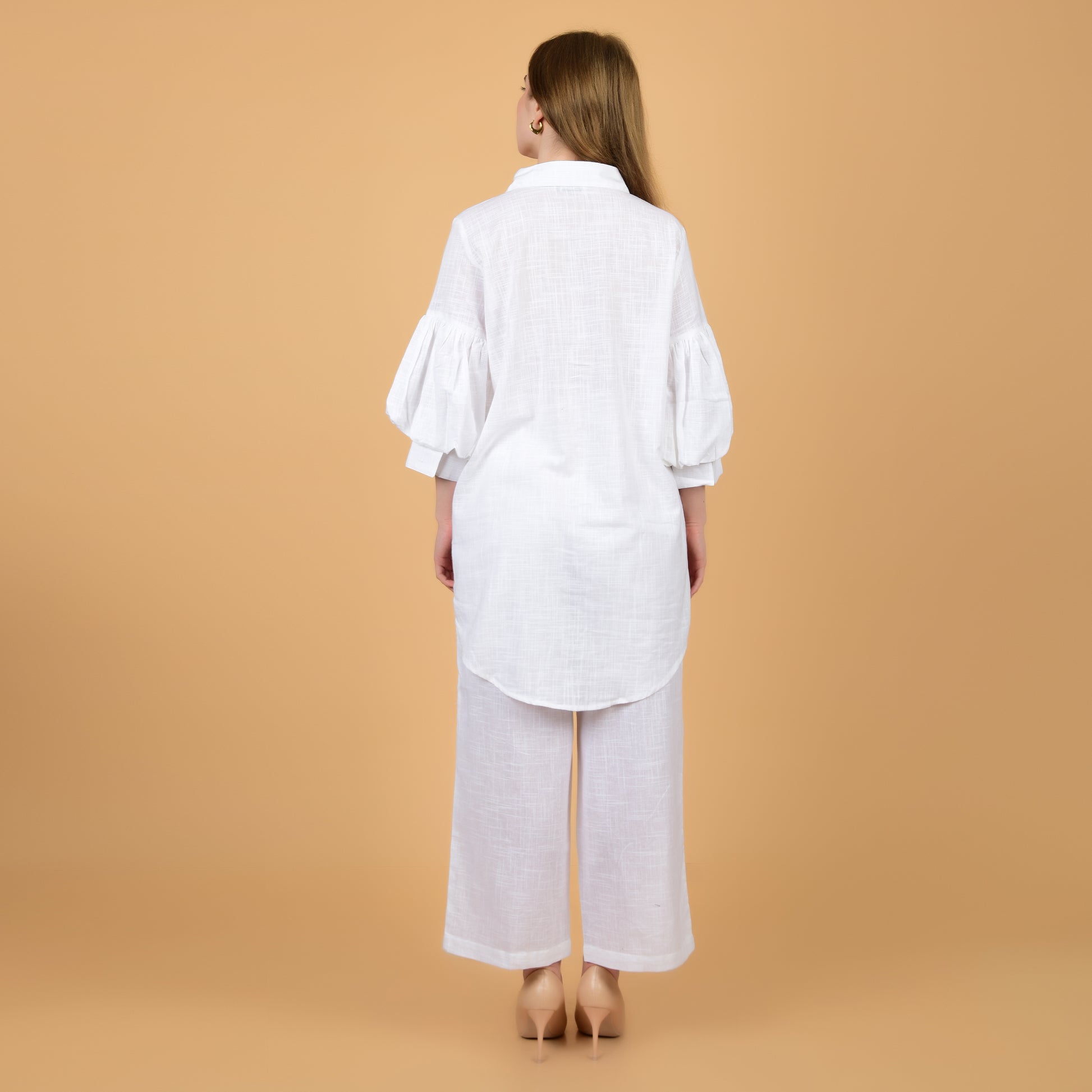 Long Shirt With Balloon Sleeve White Pure Cotton Coord Set