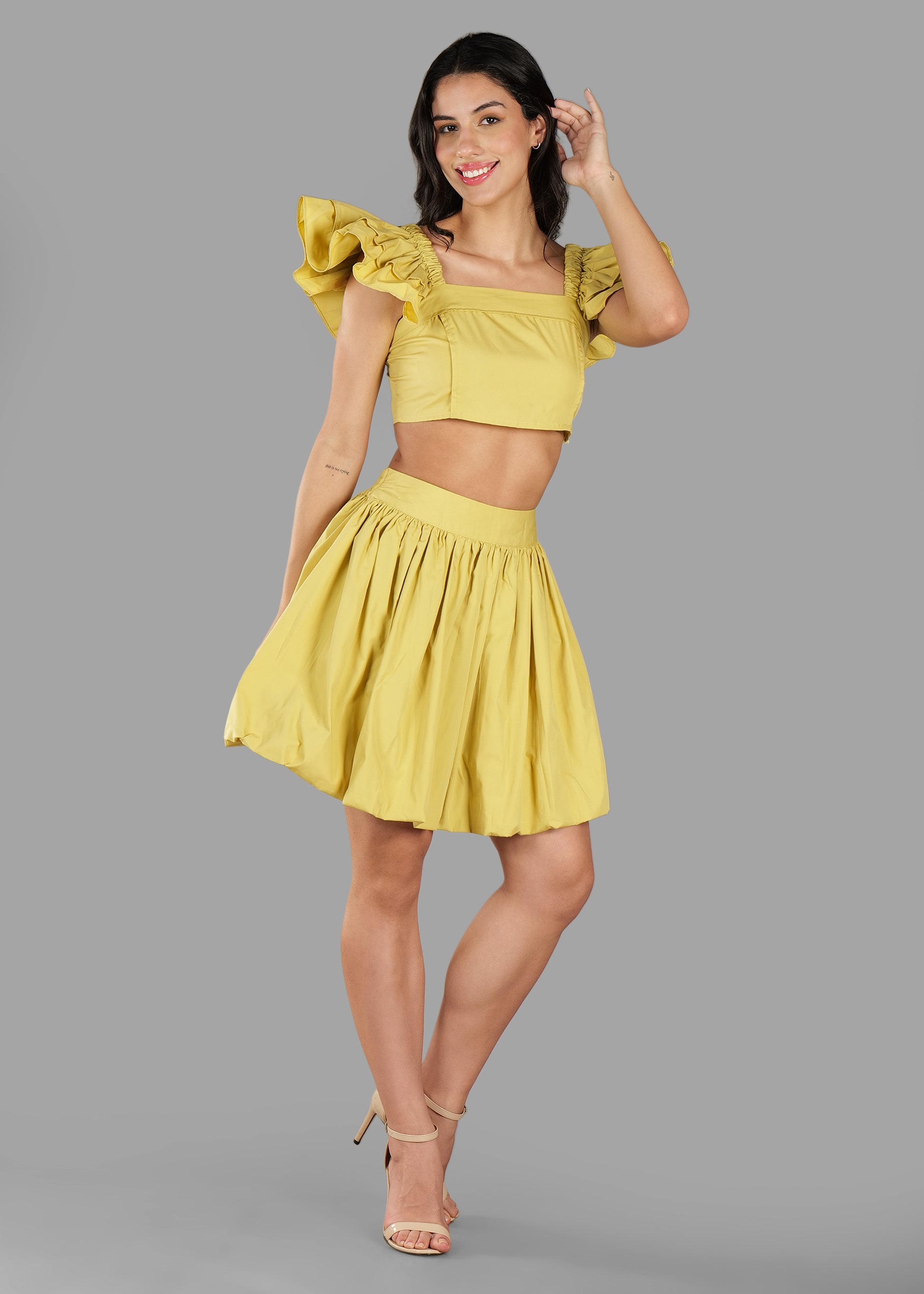 Aqua Blue Cotton Double Breasted Notched Lapel Crop Top Coord Set