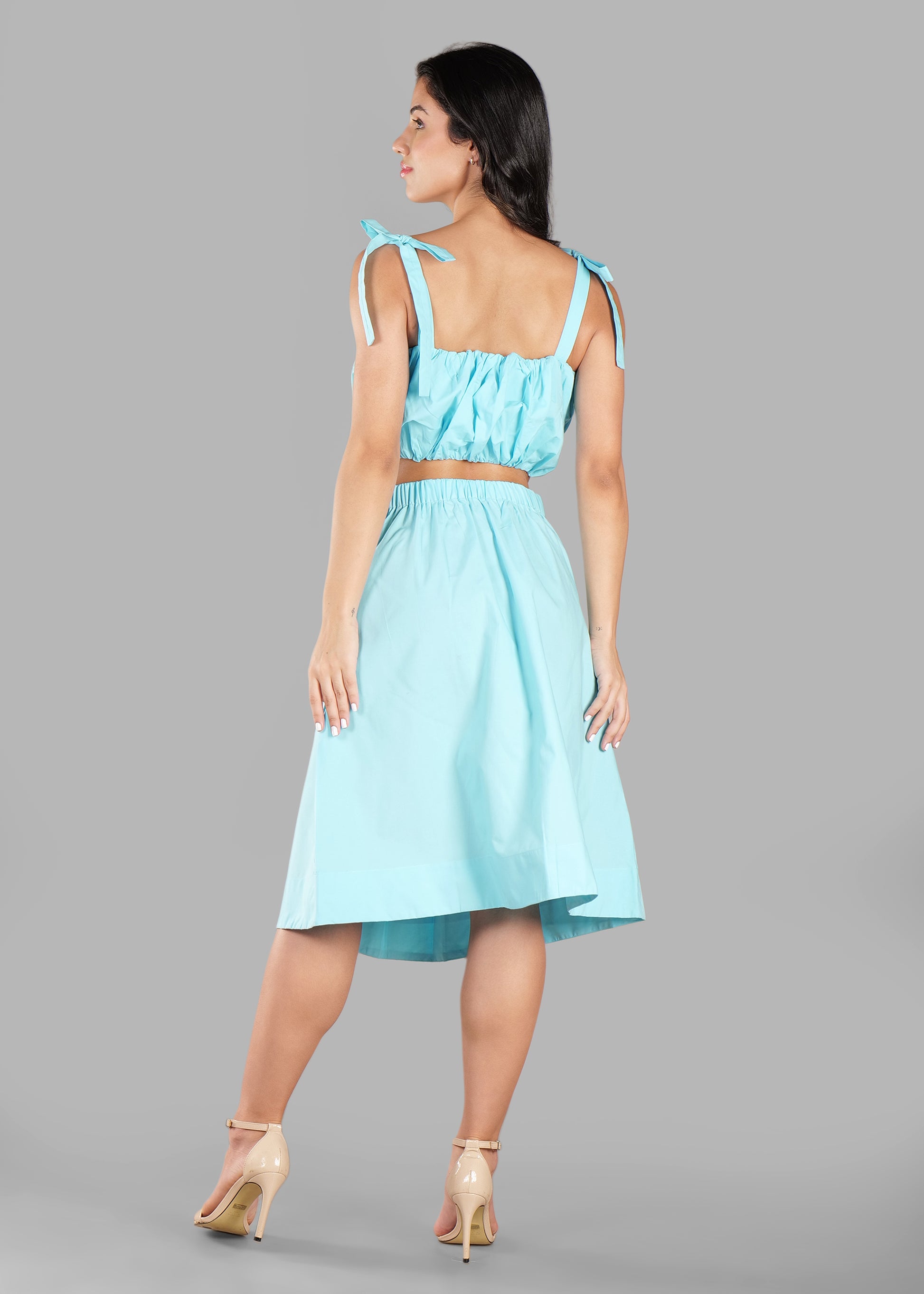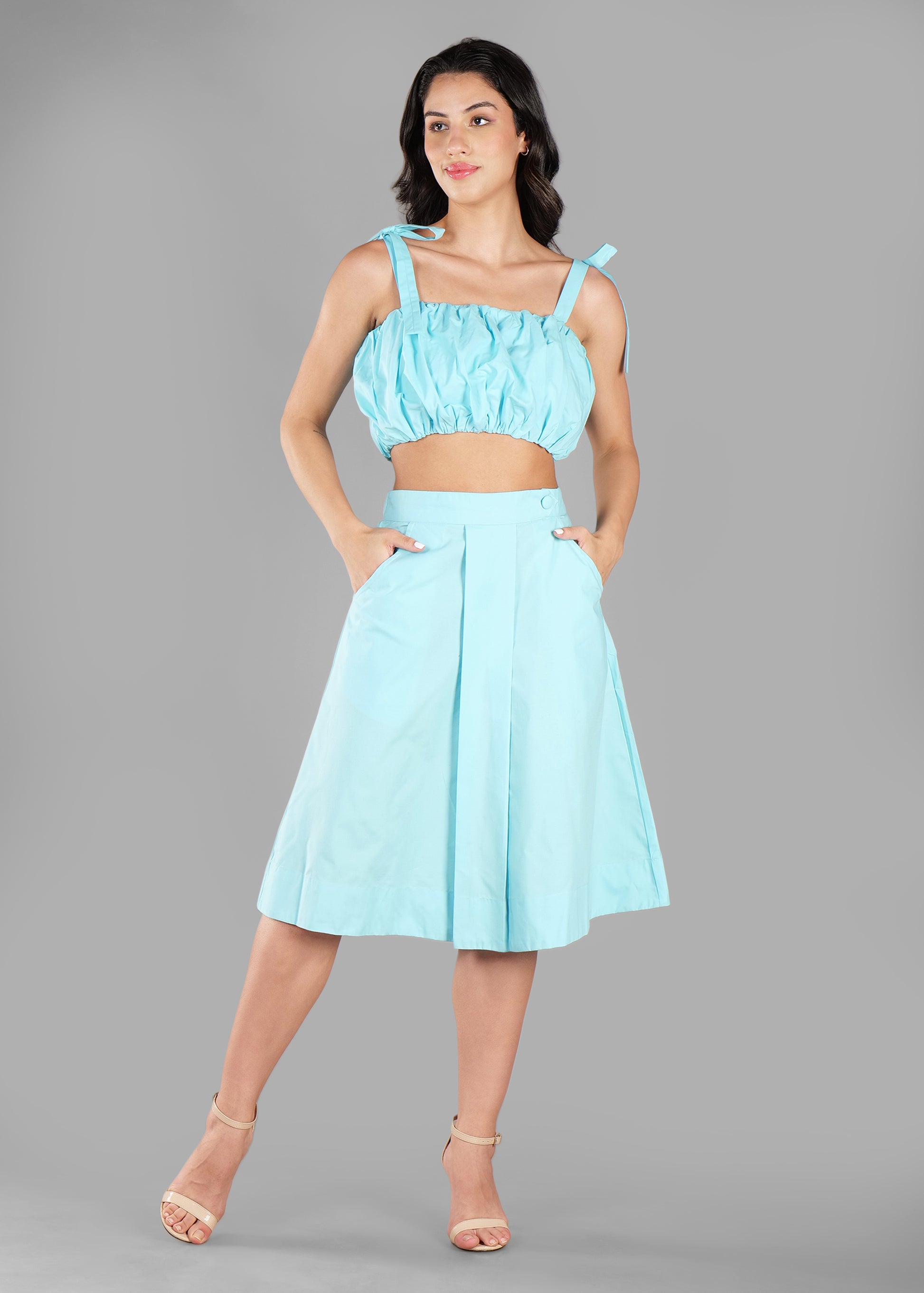 Aqua Blue Cotton Double Breasted Notched Lapel Crop Top Coord Set