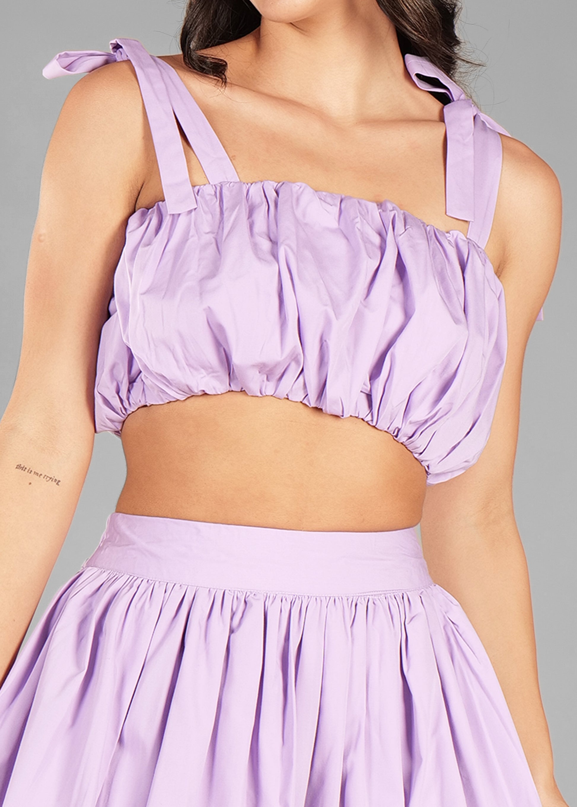 Purple Cotton Double Breasted Notched Lapel Crop Top Coord Set